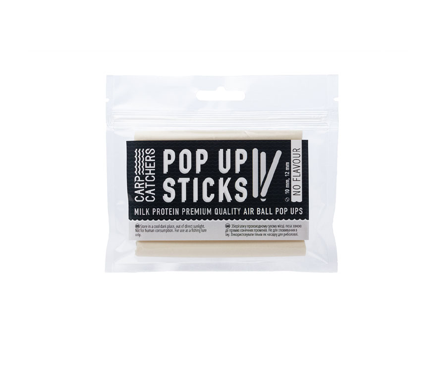 Поп-ап палочки Pop Up Sticks изготовлены на том же миксе, что и все поп-апы Carp Catchers – на собственном поп-ап миксе на основе молочных протеинов, с применением повышенной эффективной дозировки подсластителя NHDC. Pop Up Sticks имеют яркий флюоресцентный цвет, но не имеют запаха. Вы можете использовать их без ароматизатора прямо из пачки или добавить любую эссенцию по вашему вкусу. Для ароматизации поп-апов используйте специализированные ароматизаторы, не используйте натуральные устранения, чтобы не нарушить плавучесть поп-апов.