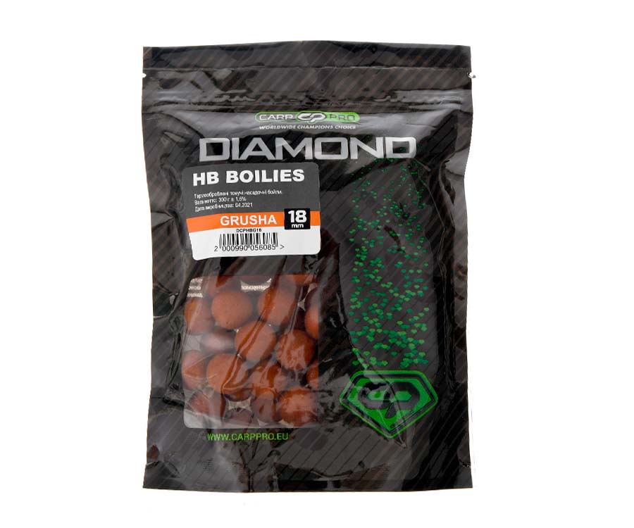 Carp Pro Diamond HB Boilies – классические тонущие бойлы высшего качества, которые идеально подходят для ловли карпа. Бойлы Carp Pro Diamond HB изготовлены с использованием самых высококачественных ингредиентов, поставляемых с европейского рынка, и содержат все необходимые для карпа питательные вещества: зерновые экструдаты, гидролизаты, аминокомплексы, комплексы минералов, витаминов, арома-аттракторы. Серию приманок Carp Pro Diamond HookBaits Boilies можно условно разделить на три вкусовые гаммы: рыбную, пряную и фруктовую. В гамму рыбных вкусов входят кальмар, криль и т.п. Эти бойлы изготовлены из четырех видов зерновых, рыбной и креветочной составляющей, комплекса аминокислот и витаминов. В бойлы с пряными вкусами кроме вышеназванных ингредиентов введены привлекательные для рыбы пряности и специи, а в фруктовые бойлы такие вкусы и ароматы, как груша, клубника, сладкая кукуруза, слива и т.п. Бойлы Carp Pro Diamond выпускаются в удобной расфасовке и популярных размерах, доступны во всех магазинах компании Флагман. Они успешно протестированы на многих соревнованиях нашими ведущими спортсменами и в данный момент позиционируются, как один из лучших продуктов на украинском рынке приманок для ловли карпа.