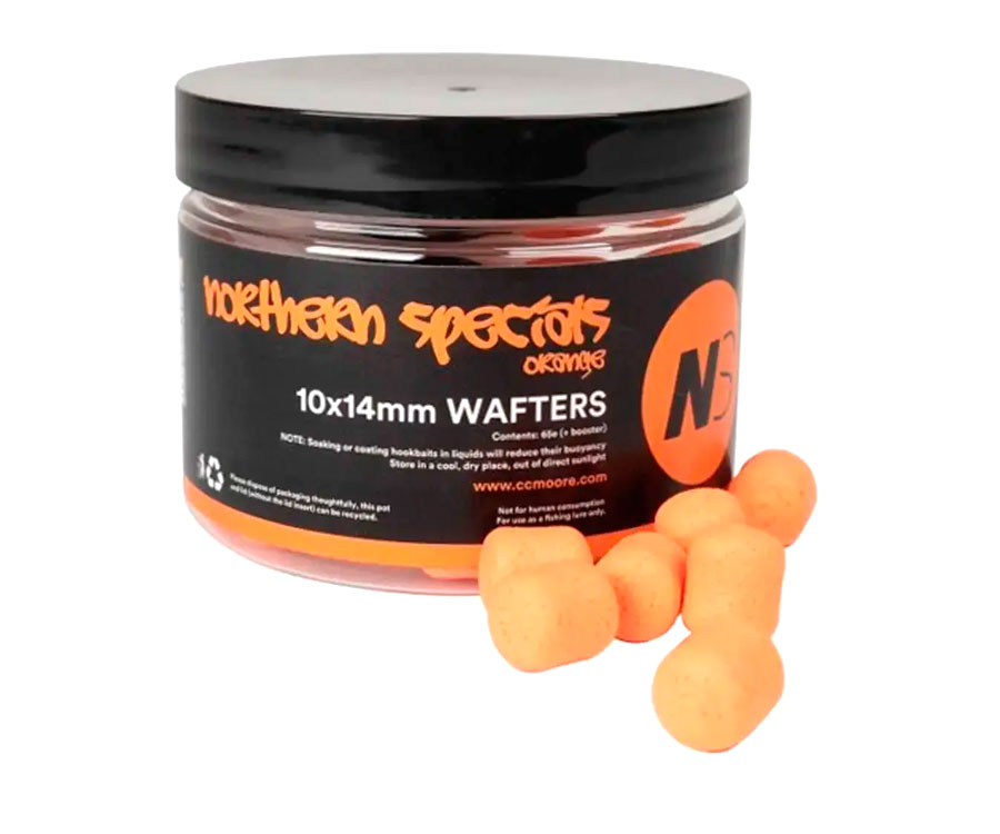 СС Moore NS 1 Dumbell Wafters Red – вафтерсы оранжевого цвета от компании CC Moore со сбалансированной плавучестью и прочной структурой, позволяющей работать более 24 часов. Вафтерсы NS 1 могут быть использованы в качестве самостоятельной насадки или в сочетании с сыпучим кормом или бойлами. В состав СС Moore Dumbell Wafters входят очень высокий уровень цитрусово-фруктового аромата NS 1 .
