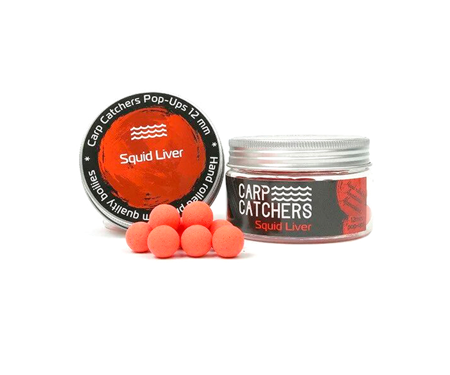 Рop-up Carp Catchers Squid Liver – плавающие бойлы со смешанным ароматом кальмара и ливера. Их флюоресцентный красный цвет отлично заметен на фоне дна. Идеально подобранный состав молочных протеинов, дополнительных аттрактантов, эфирного масла черного перца, масляной кислоты N-Butyric Acid и подсластителя NHDC делает этот поп-ап Carp Catchers исключительно эффективным для ловли карпа и другой крупной рыбы.