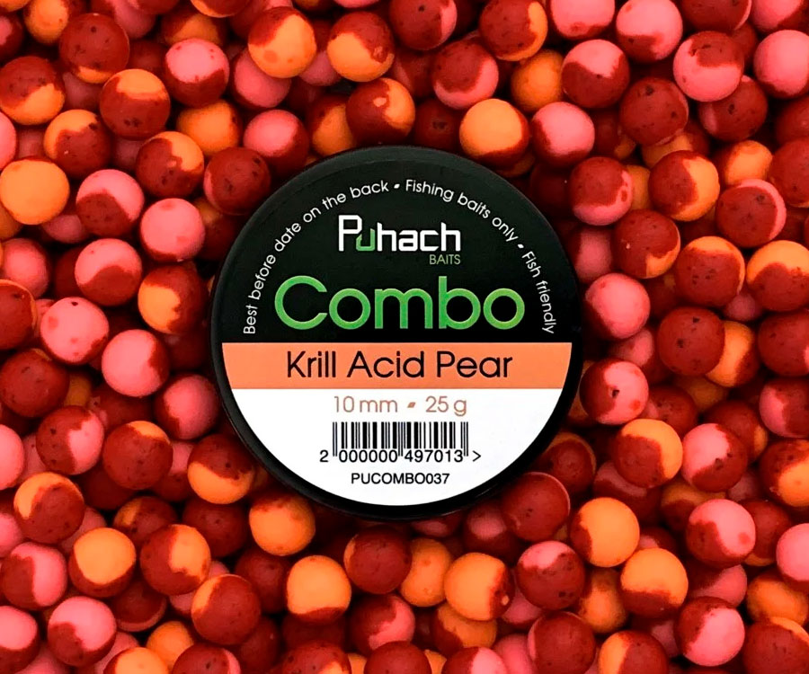 Puhach Baits Combo – уникальные бойлы нейтральной плавучести и самого высокого качества, созданные из комбинации плавающих и варёных бойлов. Разработаны чемпионом Украины и известным рыболовом-спортсменом Алексеем Пугачем с учётом опыта украинских и международных соревнований. Это насадка для сбалансированного монтажа: она не должна поднимать крючок, её задача – поднять волос и сделать сам монтаж невесомым для рыбы. В зависимости от размера бойлы Puhach Baits Combo идеально подходят для ловли карпа, амура, леща и прочей крупной рыбы. Приманки изготовлены с использованием высококачественных ингредиентов, поставляемых с европейского рынка: зерновых, стимуляторов аппетита, ароматизаторов, подсластителей, пищевых красителей и бетаина. В серии присутствуют классические и фруктовые запахи, сладкие ароматы и специи, особенно привлекательные для карпа и другой крупной рыбы. Бойлы Puhach Combo абсолютно безвредны для рыбы и других подводных обитателей. Их выпускают в наиболее популярных диаметрах с оригинальным цветом, вкусом и запахом, быстро распространяющимся в воде и отлично привлекающим рыбу в место ловли. Рекомендованы как для классической карповой, так и для флэт-фидерной ловли.