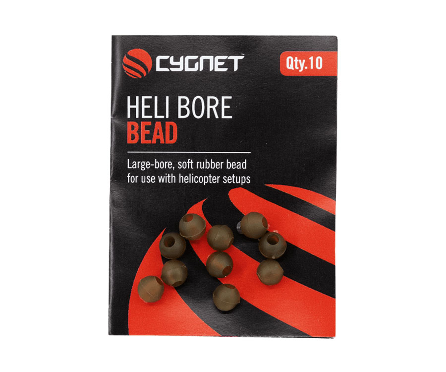 Cygnet Heli Bore Bead – универсальные отбойные бусины темно-оливкового цвета (Camo). Изготовлены из мягкой эластичной резины. Предназначены для защиты узлов и использования в качестве буфера. Чаще всего Cygnet Heli Bore Bead используются в оснастках Helicopter и Chod. Идеально сочетаются с ледкором и конусным противозакручивателем поводка.