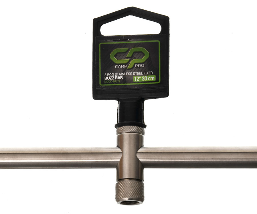 Carp Pro 3 Rod Stainless Steel Fixed Buzz Bar – прочный буз-бар фиксированной длины на два удилища, который изготовлен из нержавеющей стали. Имеет универсальную резьбу для крепления к род-поду или стойке, а также для установки электронных сигнализаторов поклевки или держателей комля. Для надежного крепления оборудования в нужном вам положении в местах его установки размещены широкие контргайки с накаткой. Буз-бар Carp Pro 3 Rod Stainless Steel Fixed отличается высокой надежностью и компактностью, имеет стильный дизайн. Длина моделей 3 Rod Stainless Steel Fixed Buzz Bar: 8" (20 см), 12" (30 см) и 16" (40 см).