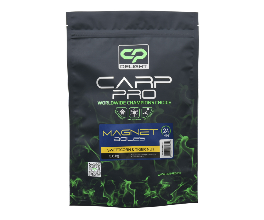 Бойлы Carp Pro Delight Magnet Boiles – варёные прикормочные бойлы, изготовленные с использованием высококачественных ингредиентов, поставляемых с европейского рынка. Это зерновые, стимуляторы аппетита, ароматизаторы, подсластители, бетаин, полезные для карпа комплексы минералов и витаминов. Данная серия разработана экспертами компании Carp Pro совместно с известным спортсменом Алексеем Пугачем. Бойлы имеют уникальное сочетание цветов, вкусов и ароматов, которые быстро распространяются в воде и привлекают карпа. Delight Magnet Boiles рекомендуются как для классической, так и для спортивной ловли карпа. Выпускаются в удобной расфасовке и в наиболее популярных размерах.