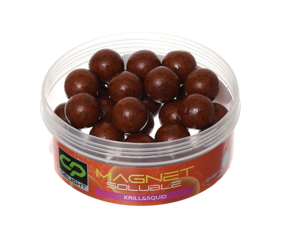 Бойлы Carp Pro Delight Magnet High Attraction Soluble – растворимые высокоатрактированные бойлы, изготовленные с использованием высококачественных ингредиентов, поставляемых с европейского рынка. Это зерновые, стимуляторы аппетита, ароматизаторы, подсластители, красители, бетаин, полезные для карпа комплексы минералов и витаминов. Данная серия разработана экспертами компании Carp Pro совместно с известным спортсменом Алексеем Пугачем. Бойлы имеют высокое содержание аттрактантов и уникальное сочетание цветов, вкусов и ароматов, которые быстро распространяются в воде и привлекают карпа. Delight Magnet High Attraction Soluble рекомендуются как для классической, так и для спортивной ловли карпа. Выпускаются в удобной расфасовке и в наиболее популярных размерах.