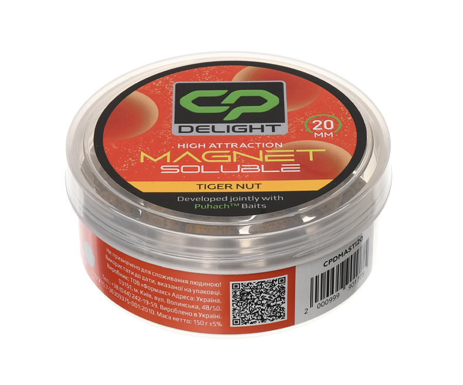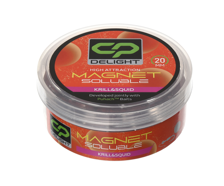 Бойлы Carp Pro Delight Magnet High Attraction Soluble – растворимые высокоатрактированные бойлы, изготовленные с использованием высококачественных ингредиентов, поставляемых с европейского рынка. Это зерновые, стимуляторы аппетита, ароматизаторы, подсластители, красители, бетаин, полезные для карпа комплексы минералов и витаминов. Данная серия разработана экспертами компании Carp Pro совместно с известным спортсменом Алексеем Пугачем. Бойлы имеют высокое содержание аттрактантов и уникальное сочетание цветов, вкусов и ароматов, которые быстро распространяются в воде и привлекают карпа. Delight Magnet High Attraction Soluble рекомендуются как для классической, так и для спортивной ловли карпа. Выпускаются в удобной расфасовке и в наиболее популярных размерах.