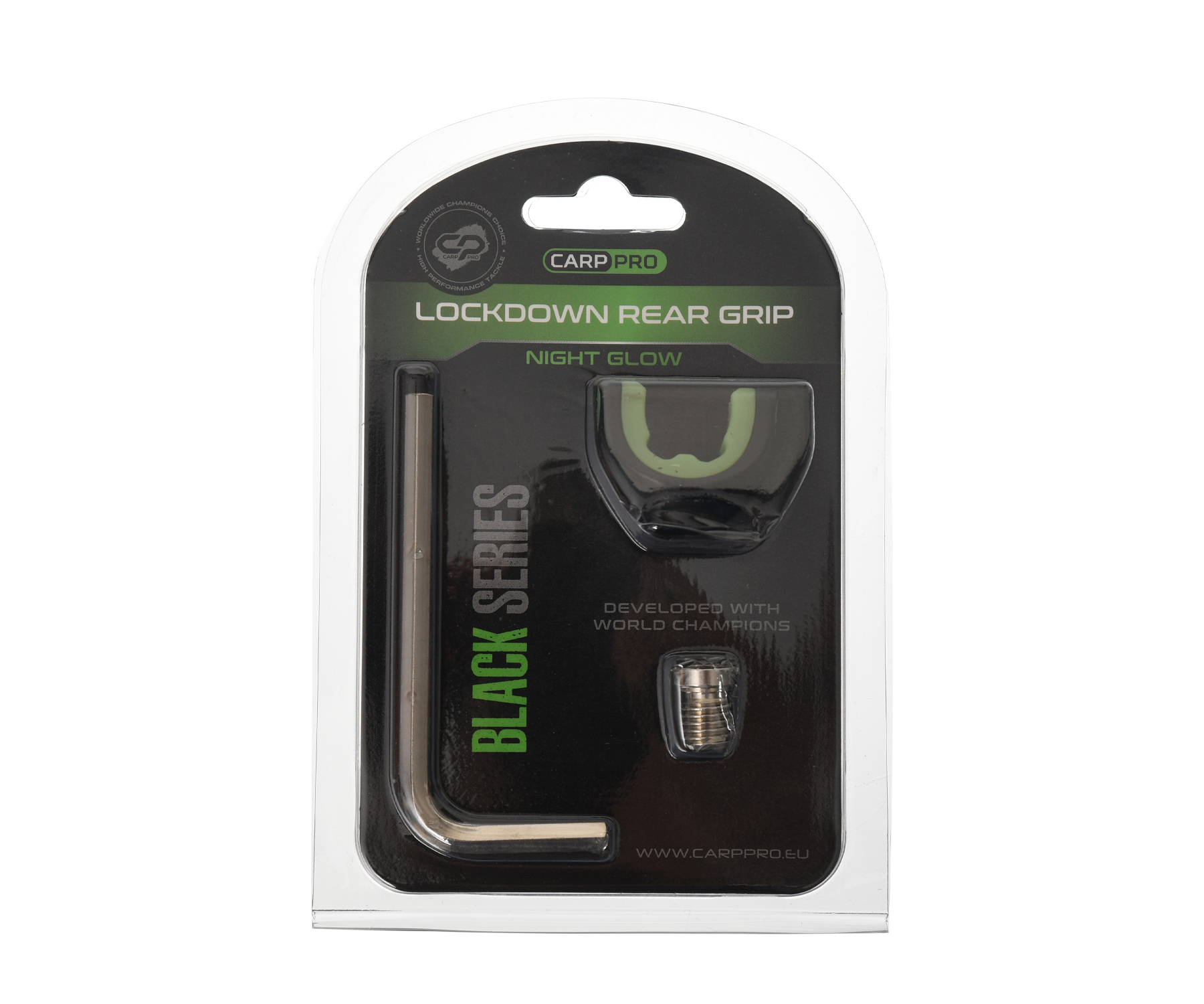 Carp Pro Lockdown Rear Grip Small black series – современный и высокоэффективный держатель комлевой части удилища для использования на род-подах, буз-барах и стойках. В комплект входит держатель, эластичная вставка (светонакопительная, зелёного цвета), винт крепления и ключ-шестигранник. Держатель изготовлен из прочного алюминиевого сплава в стильном черном цвете. Вкрученный в бузбар или стойку, держатель комля Carp Pro Lockdown Rear Grip Small надёжно фиксируется и не прокручивается, а эластичная вставка прочно удерживает бланк удилища. Такой набор пригодится как начинающим, так и опытным рыболовам, позволяя ловить с максимальным комфортом.