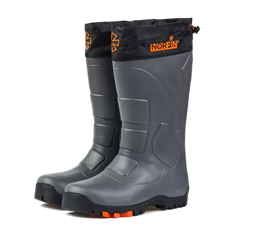 Зимние сапоги Norfin Klondaik 2 с вынимаемым термовкладышем выполнены из материала EVA и имеют резиновую подошву, обеспечивающую наилучшую защиту от случайных проколов и порезов. Сапоги Норфин оборудованы системой Anti Slip Duo, состоящей из двух откидных шипов (на носке и пятке), предотвращающей скольжение на льду. Шипы изготовлены из нержавеющей стали, при необходимости их можно снять или заменить. Благодаря 3-х слойному вынимаемому вкладышу, толщиной 10 мм и особенностям материала EVA, в котором растворено большое количество микропузырьков воздуха (вспененная резина), сапоги обеспечивают термозащиту в динамике при температуре до -40°С. В верхней части голенища установлена снегозащитная манжета из нейлона с кнопочным фиксатором. 100% защита от воды.