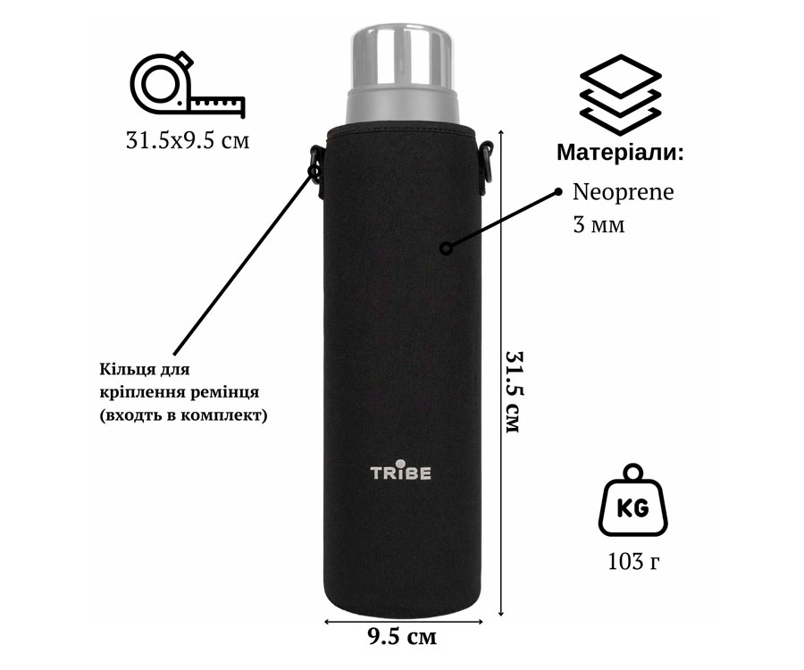 Чехол Tribe Neoprene Cover – это чехол, созданный специально для защиты термоса Tramp Expedition Line объёмом 1,6 л (UTRC-029), чтобы обеспечить ему полноценную защиту от механических повреждений и потёртостей благодаря 3-миллиметровому слою неопрена. Благодаря продуманным размерам и эластичному материалу чехол также идеально подходит для других моделей похожих размеров. Мягкий, но прочный материал сохранит целостность и внешний вид термоса, даже если тот случайно упадёт. Чехол отличается эргономичным дизайном и продуманной функциональностью. Он укомплектован регулируемым наплечным ремнём, который легко снять, когда нет необходимости нести термос на плече. Такая возможность будет особенно полезной в полевых условиях, во время длительных пеших переходов или в городских путешествиях, где удобство и мобильность имеют первостепенное значение. Помимо защиты от ударов, неопрен также сохраняет тепло, что дополнительно повышает эффективность термоса в холодное время года. Размеры: 31,5х9,5 см.