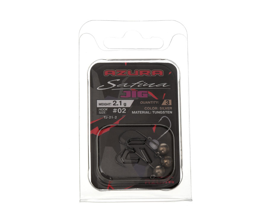 Джиг-головки Azura Safina Tungsten Jig изготавливаются из вольфрама. Такой подход значительно улучшает полётные свойства оснастки, особенно если использовать приманки, диаметр которых меньше, чем диаметр самой джиг-головки. Помимо этого, крючок Azura Safina Tungsten Jig имеет сразу несколько исключительных фишек, первой из которых является, конечно же, его форма. Именно форме крючка эта джиг-головка обязана такой высокой степени реализации поклёвок. Для предотвращения сползания приманки с цевья, на ней имеются сразу два своеобразных шипа, расположенных в противоположных друг от друга направлениях. Они позволяют надёжно зафиксировать приманку и существенно продлить срок службы силикона. Специальная заточка жала позволяет сохранять его остроту поразительно долго, что также является неоспоримым преимуществом именно этой серии джиг-головок Azura.