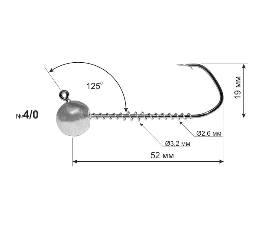 Крючок выполнен из высокоуглеродистой стали, произведенной в Бельгии (сталь используется в производстве крючков OWNER). Основным фиксирующим элементом силиконовой приманки является витая пружина. Уникальность конструкции заключается в динамически изменяющемся диаметре пружины. Грузило шаровидной формы выполнено из качественного свинца марки С1. Ушко крючка загнуто под углом 1250, что придает более плавную и естественную проводку джиг-головке при отрыве от дна и опускании ее обратно. Также угол 1250 позволяет подсекать и удерживать рыбу более эффективно. Крючок имеет высококачественное покрытие черный хром, позволяющее использовать крючок при ловле в морских лиманах.