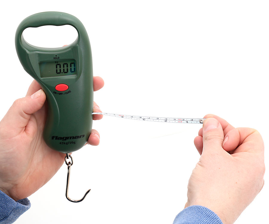 Электронный безмен, предназначенный для взвешивания улова. Рассчитан на вес до 45 кг и взвешивает с точностью до 10 г. Элементы питания — 2хААА. Оборудован встроенной рулеткой для измерения длины пойманной рыбы.