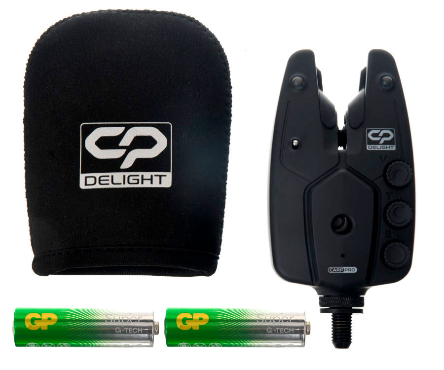 Электронный сигнализатор поклёвки Carp Pro Delight выпускают в комплектации: 1 сигнализатор, 2 элемента питания AA (1,5 V), защитный неопреновый чехол.