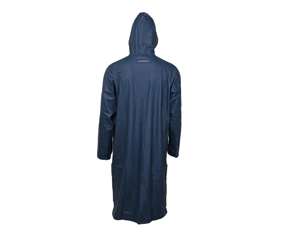Плащ Flagman Premium Navy – практичный, компактно складывающийся дождевик – неотъемлемый атрибут экипировки каждого рыболова. Изготовлен из плотного, не пропускающей воду материала PVC (поливинилхлорид). Дождевик Flagman Premium Navy имеет проклеенные швы, что гарантирует максимальную водонепроницаемость, оборудован капюшоном и кнопками на манжетах. По бокам расположены два кармана, прикрытые клапанами от дождя. Основная застёжка-молния плаща Flagman Premium Navy дополнительно прикрыта защитным клапаном на кнопках, предотвращающим проникновение влаги внутрь изделия.