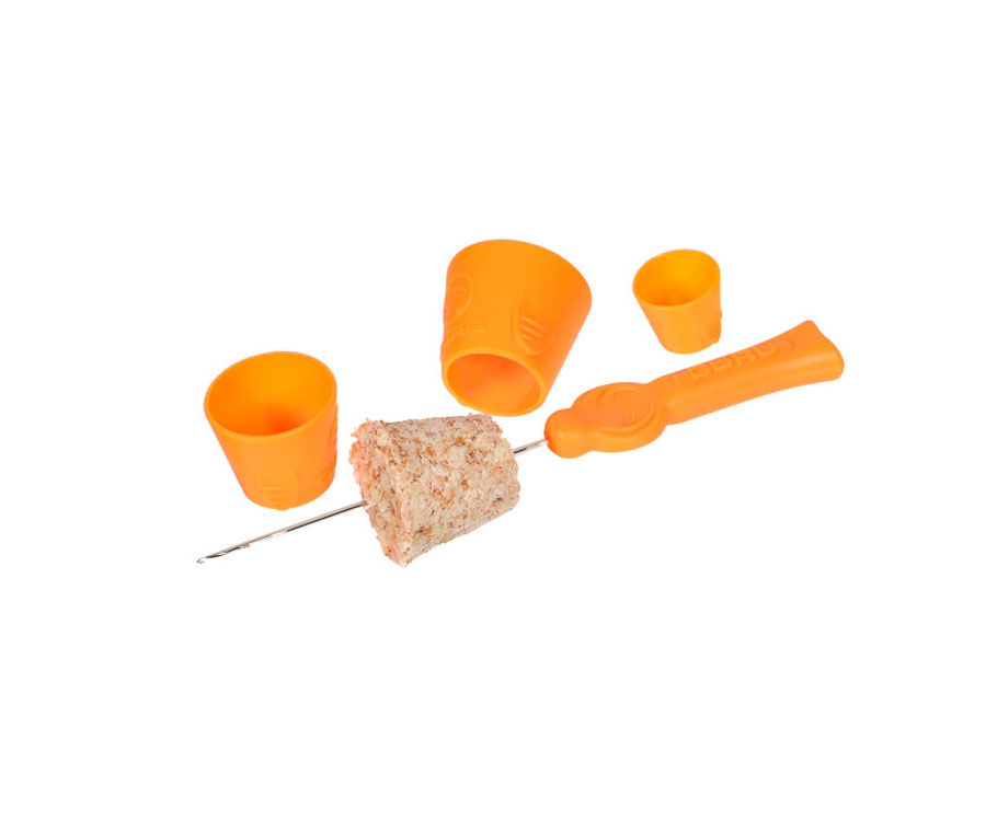 Для изготовления прикормочной порции необходимо плотно наполнить конус и продеть через него оснастку при помощи иглы для бойлов, которая поставляется в комплекте с формой. После этого форму необходимо снять.