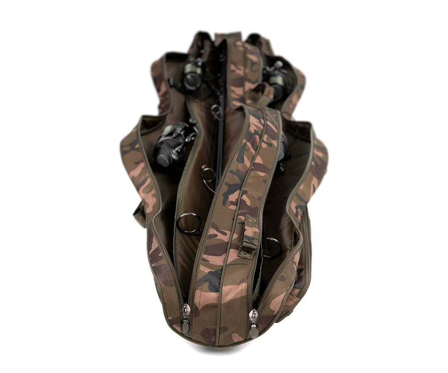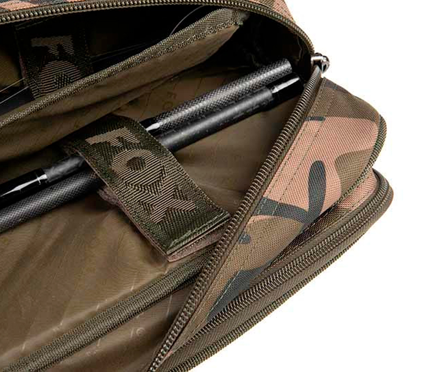 Чехол Fox Camolite 12ft 4 Rod Hardcase — это жёсткий кейс, предназначенный для надёжной защиты четырёх 12-футовых удилищ с катушками. Его прочная формованная конструкция и внутренние мягкие перегородки предотвращают соприкосновение снастей между собой, обеспечивая безопасность при транспортировке. Внутри предусмотрены мягкие чашечки для защиты комлевых частей удилищ и липучки для фиксации. Два полноразмерных отделения на молниях позволяют размещать удилища по схеме «2 вверх, 2 вниз». Дополнительные боковые карманы предназначены для хранения подсака, стоек и грузил. Чехол выполнен из водоотталкивающего материала 500D с камуфляжным рисунком Fox Camo и оснащён усиленными молниями, мягкой ручкой и съёмным плечевым ремнём для удобства переноски. Его размеры составляют 195 × 25 × 25 см.