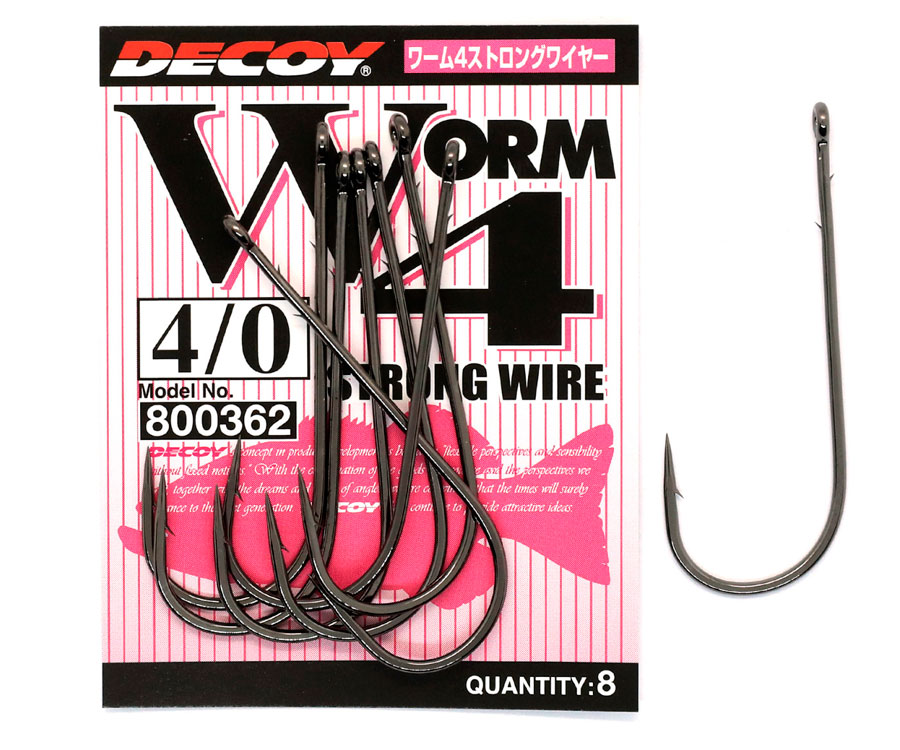 Крючок Decoy Worm 4 Strong Wire относится к числу универсальных одинарных моделей. Его отличают высокая надёжность, лёгкость в эксплуатации и обращении. Такие качества данной модели снискали ей поклонников среди рыболовов, отдающих предпочтение преимущественно спиннинговой ловле. Крючок имеет прямое удлиненное цевье, имеющее две зазубрины (бородки). Последние призваны надёжно закрепить на крючке рыхлые силиконовые приманки или живую наживку, предотвращая её сползание при забросах и атаках рыбы. Глубокий загиб крючка Decoy Worm 4 Strong Wire и широкий поддев помогут с лёгкостью просечь пасть рыбы. Модель оснащена достаточно широким ушком, которое обеспечивает приманке необходимую свободу и полезно для монтажа с помощью заводных колец. Такая особенность также позволяет использовать Worm 4 Strong Wire для оснащения ушастых грузил. Для изготовлении крючка используется кованая высокоуглеродистая стальная проволока, благодаря которой полученное изделие обладает повышенной прочностью и минимально подвержено деформации. Надёжную подсечку трофея обеспечивает идеально острое жало. Крючок прекрасно подходит для оснащения вытянутых узкотелых приманок – твистеров, слагов, червей.