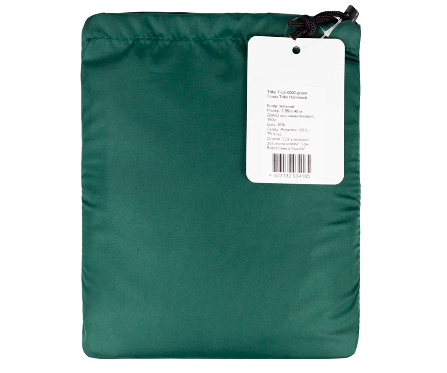 Гамак Tribe Hammock T-LE-0002 – туристический гамак от украинского бренда Tribe, который изготовлен из полиэстера плотностью 75 г/м2. Гамак Tribe Hammock имеет легкую и надежную конструкцию. Благодаря компактным размерам и малому весу он идеально подходит для туристических походов, путешествий и отдыха на природе. Гамак Hammock T-LE-0002 поставляется с двумя стропами длиной 3,8 м и удобно упакован в чехол, который прикреплен к гамаку и служит карманом для хранения всевозможных мелочей, например, телефонов или книг. Чтобы установить гамак, перед первым использованием проденьте один конец стропы в кольцо на другой стороне изделия.