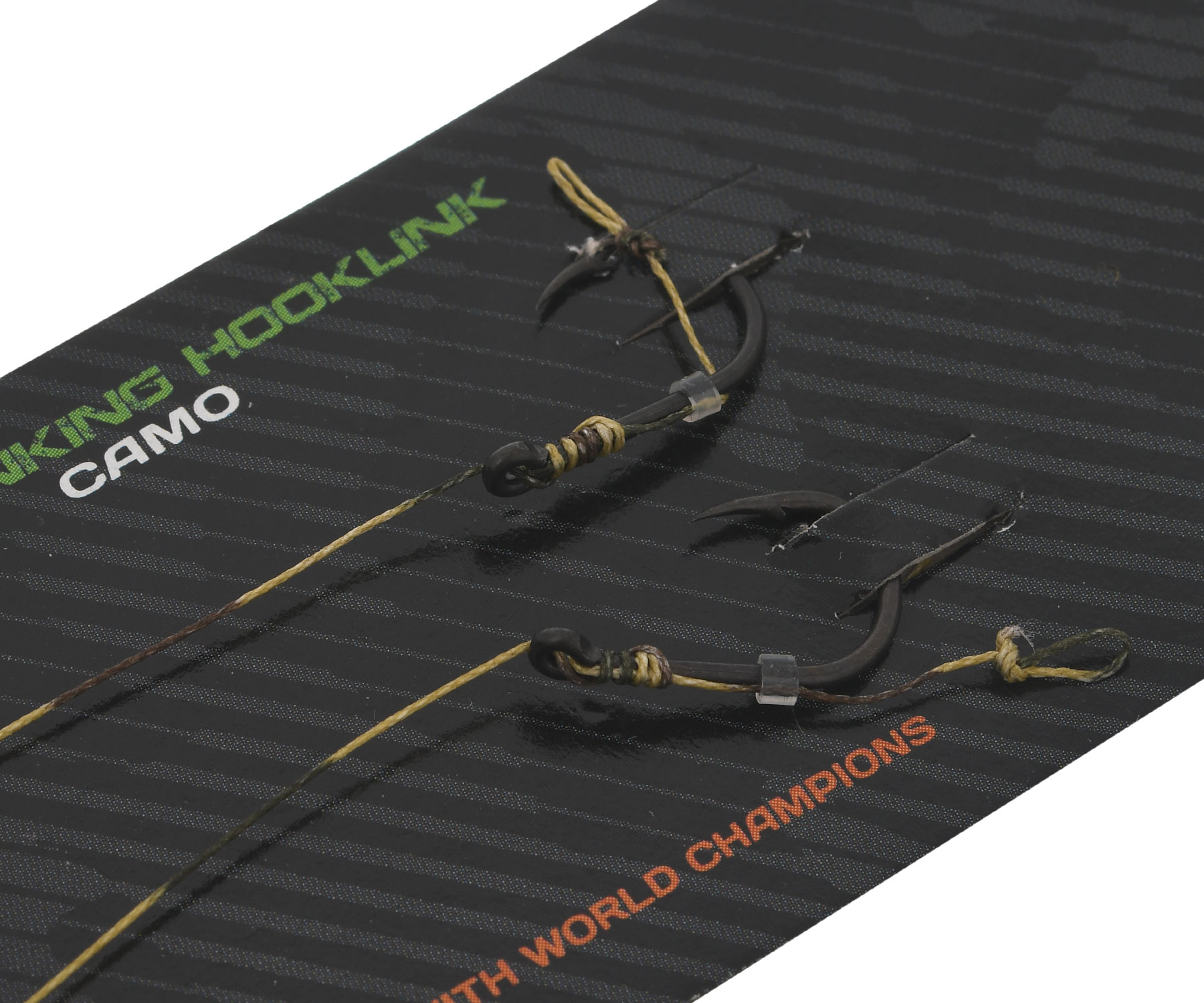 Carp Pro Camo Hooklink 15 см 25lb PTFE Wide Gape In-turned – полностью готовый к использованию карповый поводок, который для более естественной презентации насадки изготовлен из камуфлированного поводкового материала Carp Pro Sinking Hooklink Camo. Это мягкий, тонущий материал, обладающий чрезвычайно высокой прочностью и специальной камуфляжной расцветкой (Camo) в виде плавно чередующихся оттенков зелёного, песочного и коричневого цветов. Данный поводковый материал на дне ведёт себя естественно и при этом идеально маскируется среди растительности, ила, песка и мелких камней. Обладает превосходной прочностью на узлах. Carp Pro Camo Hooklink 15 см 25lb оснащён качественным крючком серии BT – Carp Pro Wide Gape In-Turned с черным PTFE (тефлоновым) покрытием, которое не даёт бликов, и универсальной формой. Крючок имеет широкий поддев, короткое цевье, немного загнутые внутрь жало и ушко, а также агрессивный изгиб, который повышает прочность крючка и засекание рыбы. Форма крючка серии Wide Gape In-turned BT прекрасно подходит для презентации как тонущих, медленно тонущих, сбалансированных, так и плавающих насадок любого вида. Ушко крючка на 5˚ загнуто в сторону жала – это значительно улучшает засечение трофея благодаря быстрому развороту крючка во рту рыбы. Длина поводка: 15 см. Разрывная нагрузка: 25 lb.