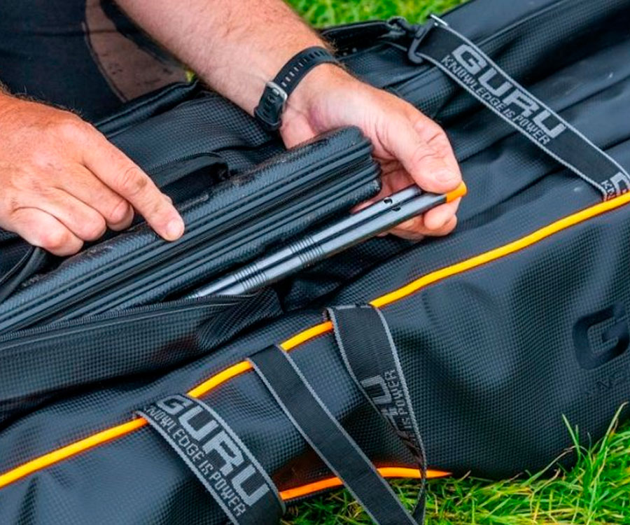 Чехол для хранения и транспортировки удилищ Guru Fusion Rod 6 Plus+. Модель имеет три обособленных отделения на молниях, в каждом из которых можно разместить по 2 удилища с катушками. Прекрасно подойдет для транспортировки полного комплекта оснащенных удилищ к месту рыбалки. Каждое отделение оборудовано мягкими внутренними разделителями, которые отделяют каждый комплект и предотвращают повреждение удилищ во время транспортировки. Чехол Guru Fusion Rod 6 Plus+ имеет два дополнительных кармана на молнии для хранения вспомогательных принадлежностей и аксессуаров. Также есть внешний карман для размещения зонта и регулируемый наплечный ремень для транспортировки.