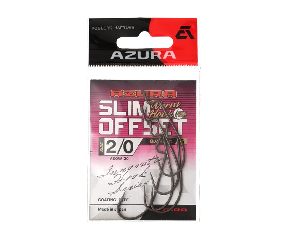 Azura Slim Offset Worm Hook – серия удлинённых офсетных крючков, идеально сочетающихся с приманками узкой формы, такими как твистеры и пластиковые черви. Мощные и прочные крючки Azura Slim Offset Worm Hook изготовлены из толстой высокоуглеродистой проволоки, имеют кованый поддев и сверхострое жало с игольчатой заточкой Needle Point. Z-образный изгиб гарантирует хорошую фиксацию приманки в головной части крючка, а покрытие PFTE улучшает проникающую способность и защищает крючки от коррозии, что особенно актуально, когда при ловле используются съедобные приманки, имеющие в своём составе соль.