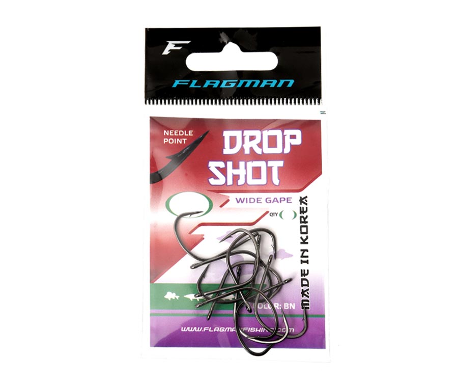 Flagman Drop Shot – серия высококачественных крючков, разработанных специально для использования в монтаже Drop Shot. Широкий поддёв Wide Gape позволяет использовать крючок Flagman Drop Shot с мягкими приманками разных типов и любых пропорций. Такой крючок не будет прорезать пасть рыбы и разгибаться при форсированном вываживании крупного экземпляра. Кроме того, Flagman Drop Shot обеспечит жёсткую, надёжную подсечку. Жало игольной заточки крайне незначительно повреждает мягкие ткани, поэтому при вываживании крючок сидит в пасти рыбы плотно, и риск схода рыбы сводится к минимуму.