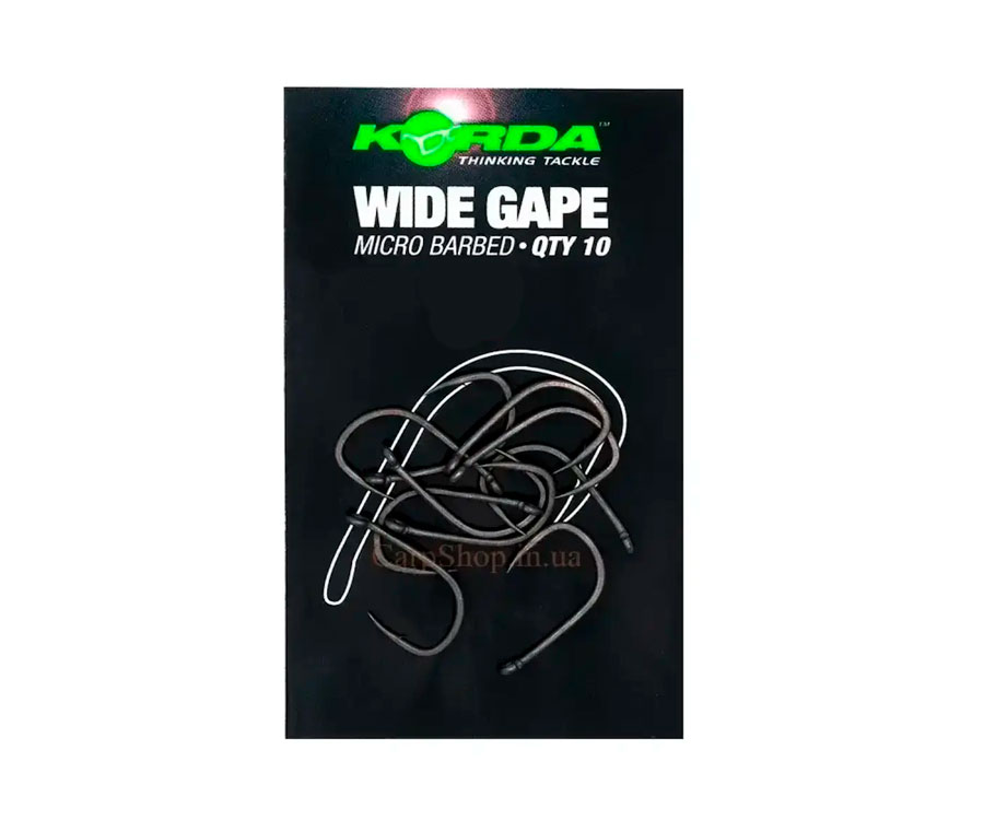 Крючки Korda Wide Gape — Крючок гибридной формы с ультра — острым изогнутым жалом и микро-зубцом. Эта модель соединяет в себе широкий поддев с плоским и кованым цевьем средней величины. Ушко уменьшено в размере, повернуто на 15-градусов. Крючок обладает тусклым шелковисто-гладким покрытием.