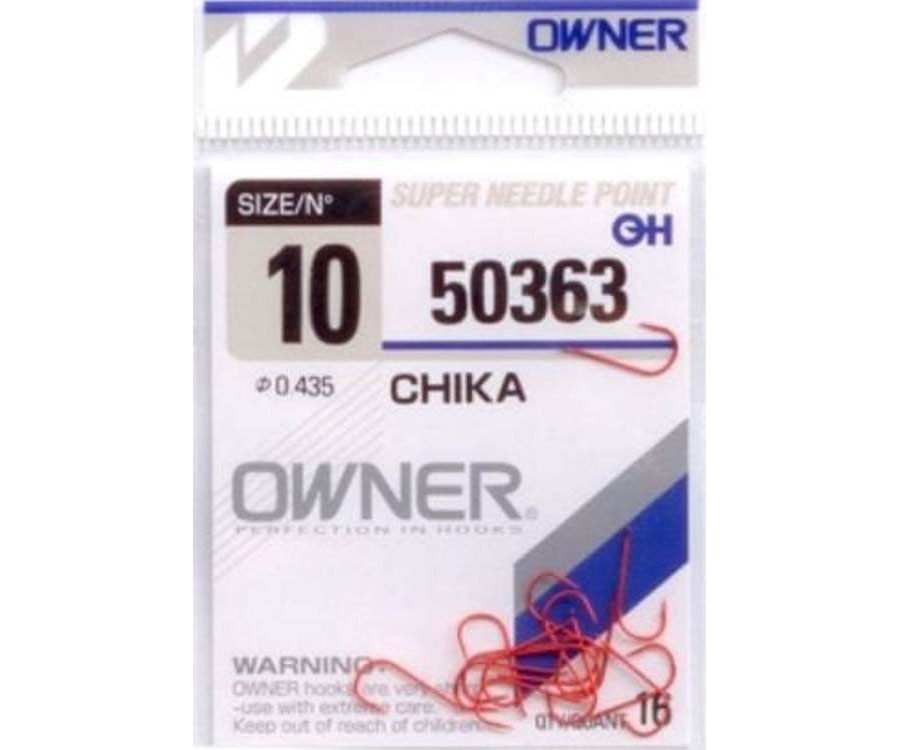 Крючки Owner 50363 Chika Red №10 — самые универсальные крючки из всех существующих. Тонкие, зацепистые и надежные. Отличительной чертой являются классический круглый загиб, аккуратная, не травмирующая рыбу, бородка и острейшее Super Needle Point жало. Отлично удерживают насадки животного происхождения, такие как опарыш, мотыль и др. Рекомендованы для использования в поплавочных и донных оснастках. Кроме того, красное покрытие способствует успешному использованию этих крючков при изготовлении высококачественных мормышек для зимней рыбалки.