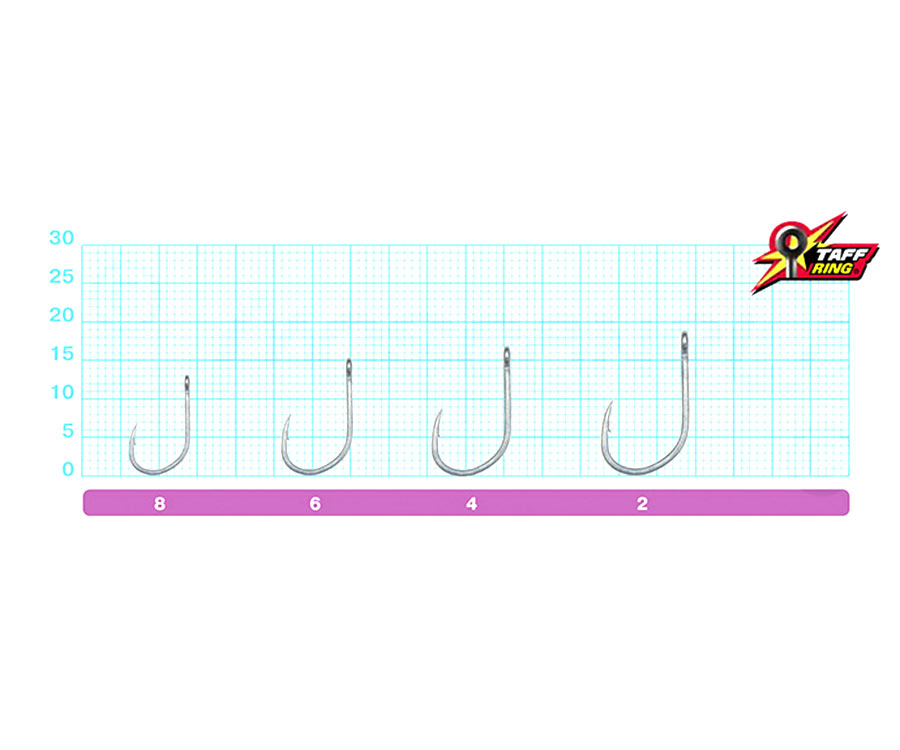 Крючок Owner Carp Taff CT1-53272 изготовлен из толстой проволоки, с матовым черным покрытием, с игольной заточкой и нормальной длины цевьем. Особенность крючка — это заваренное колечко. Несмотря на то, что основная область применения крючков — спортивная карповая рыбалка, они, во многом благодаря широкой размерной линейкe, могут использоваться и при ловле других видов рыб, например, леща, линя, язя и др.