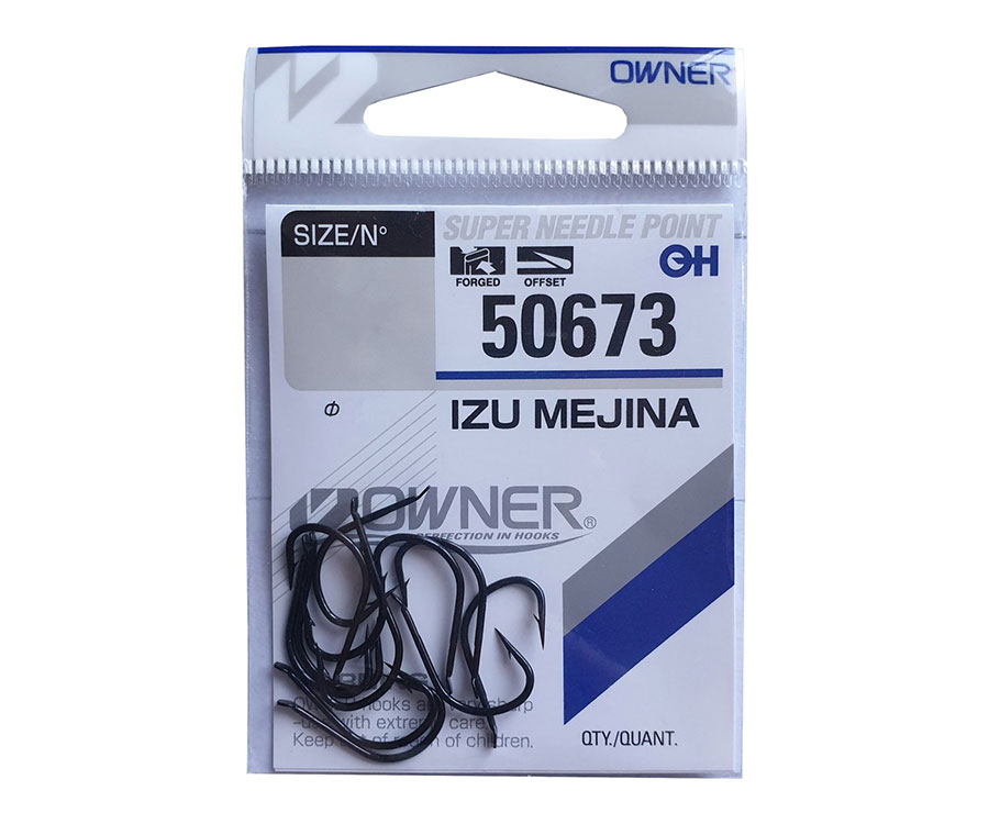 Owner Izu Mezina 50673 – серия одинарных крючков из высокоуглеродистой стали с лопаткой и кованым поддевом. Owner Izu Mezina рекомендуются для ловли крупной сильной рыбы донными и поплавочными снастями на объемные насадки. Izu Mezina имеют классический загиб, цевье нормальной длины, защитное покрытие черного цвета. Острейшее жало с небольшим загибом в сторону гарантирует эффективную подсечку и удержание клюнувшей рыбы.