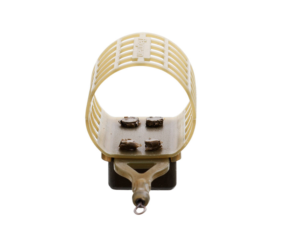 Фидерная кормушка открытого типа. Благодаря использованию пластиковой сетки, отличается средней скоростью кормоотдачи, благодаря чему может считаться универсальным решением для большинства типов водоемов, как проточных, так и стоячих. При подмотке быстро поднимается к поверхности.