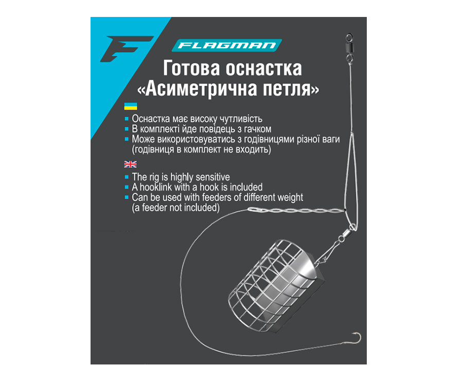 Готовая оснастка Flagman «Асимметричная петля» предназначена для фидерной ловли осторожной и малоактивной рыбы как на течении в реках и водохранилищах, так и в водоемах со стоячей водой. Монтаж «Асимметричная петля» является одним из основных и часто используемых в классической фидерной ловле и способен показать самую осторожную поклевку. Изготовлен из высококачественной жесткой лески диаметром 0,4 мм, обладает высокой устойчивостью к абразиву и прочностью на узлах, не подвержен запутыванию и позволяет использовать кормушки весом до 150 г. Поводок длиной 50 см изготовлен из высококачественной лески 0,16 мм, оснащен острейшим японским крючком № 12, что обеспечивает отличное засекание и надежное удержание рыбы при вываживании.