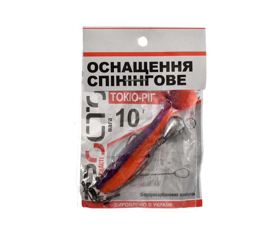 Полностью готовый к использованию монтаж для мягких пластиковых приманок Токио-риг (Tokyo Rig) – одно из недавних изобретений японских рыболовов для ловли басса. Монтаж прекрасно зарекомендовал себя и в наших условиях при ловле окуня, щуки и судака. «Просто снасти» Tokyo Rig – близкий родственник джиг-рига и отличается от него наличием проволочного отвода, благодаря которому приманка располагается еще выше над дном, словно на небольшом дроп-шоте. Отсюда и несколько техник работы с приманкой – начиная от равномерных и неравномерных протаскиваний по дну, вариантов ступенчатой проводки, подергиваний удилищем, заканчивая подбросами на месте или плавными покачиваниями кончиком удилища, когда приманка плавно играет на одном месте. Такой разнесенный монтаж отличается прекрасной результативностью, практически исключая пустые поклевки и промахи. Кроме того, оснастка Tokyo Rig от «Просто снасти» отлично «пробивает траву», обходит донный мусор и обладает исключительными полетными качествами. В роли приманки зачастую используются черви, твистеры, рачки и всевозможная креатура. В монтаже используется надежная фурнитура и поводок из японского флюорокарбона SunLine. В комплекте: готовый монтаж Tokyo Rig + уловистая приманка в подарок!