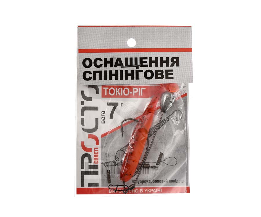 Полностью готовый к использованию монтаж для мягких пластиковых приманок Токио-риг (Tokyo Rig) – одно из недавних изобретений японских рыболовов для ловли басса. Монтаж прекрасно зарекомендовал себя и в наших условиях при ловле окуня, щуки и судака. «Просто снасти» Tokyo Rig – близкий родственник джиг-рига и отличается от него наличием проволочного отвода, благодаря которому приманка располагается еще выше над дном, словно на небольшом дроп-шоте. Отсюда и несколько техник работы с приманкой – начиная от равномерных и неравномерных протаскиваний по дну, вариантов ступенчатой проводки, подергиваний удилищем, заканчивая подбросами на месте или плавными покачиваниями кончиком удилища, когда приманка плавно играет на одном месте. Такой разнесенный монтаж отличается прекрасной результативностью, практически исключая пустые поклевки и промахи. Кроме того, оснастка Tokyo Rig от «Просто снасти» отлично «пробивает траву», обходит донный мусор и обладает исключительными полетными качествами. В роли приманки зачастую используются черви, твистеры, рачки и всевозможная креатура. В монтаже используется надежная фурнитура и поводок из японского флюорокарбона SunLine. В комплекте: готовый монтаж Tokyo Rig + уловистая приманка в подарок!