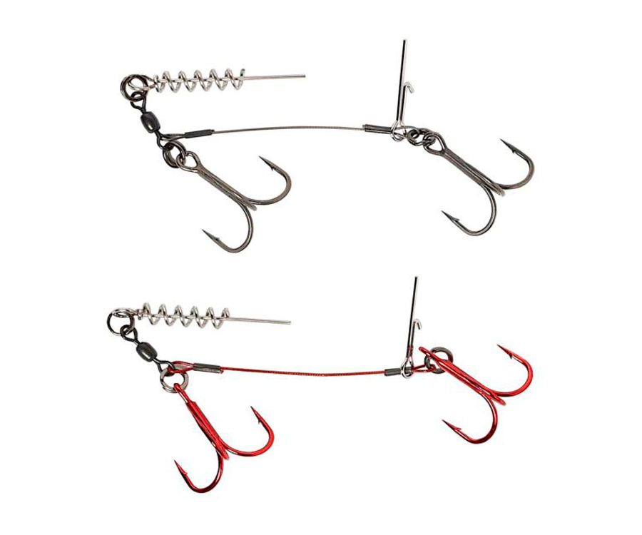 Эта оснастка Savage Gear Carbon49 Corkscrew Stinger имеет специальный штопор для надёжного крепления носовой части приманки и два тройных крючка. В упаковке 2 оснастки: одна с темными крючками, другая – с красными.