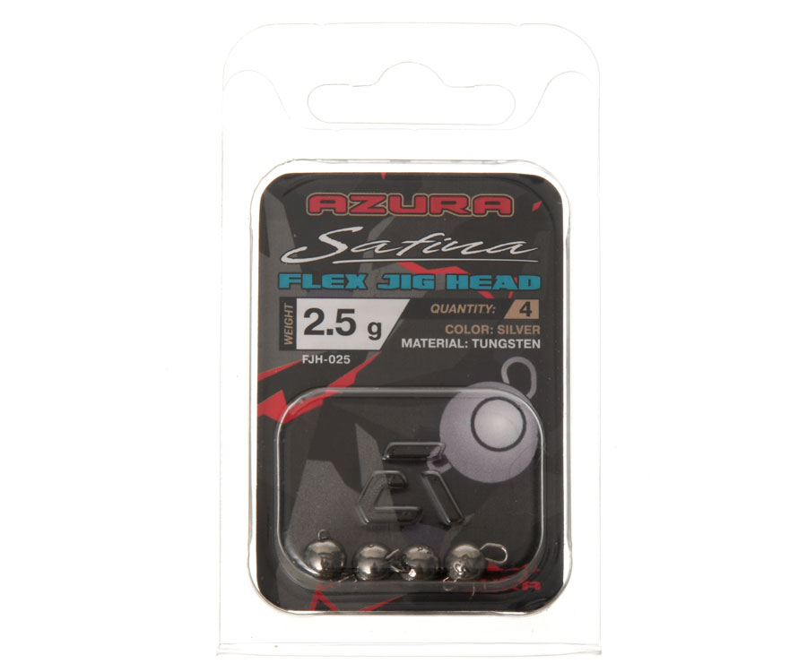 Azura Safina Tungsten Flex Jig Head – серия вольфрамовых «ушастых» грузил со съёмной скобой из нержавеющей стали, которые отличаются высоким качеством изготовления, чёткой маркировкой, выверенной формой загиба скобы. Вольфрам имеет большую плотность, чем сплавы из свинца, поэтому грузила из него получаются меньшего размера, что позитивно сказывается на дальности и точности заброса. Кроме того, вольфрамовые грузила более «звонкие» и заметно повышают чувствительность снасти: при проводке проще определить характер донного грунта, легче отличить осторожные поклёвки от контакта с водорослями и корягами. «Чебурашки» Azura Safina Tungsten Flex Jig Head имеют ещё одно преимущество – съёмную скобу из жёсткой нержавеющей проволоки, благодаря чему крючок на них устанавливается без дополнительных элементов и заводных колец. Приманку в процессе ловли можно оперативно сменить вместе с крючком, не меняя грузила. Safina Tungsten Flex Jig Head изготавливаются в широком диапазоне весов и размеров.