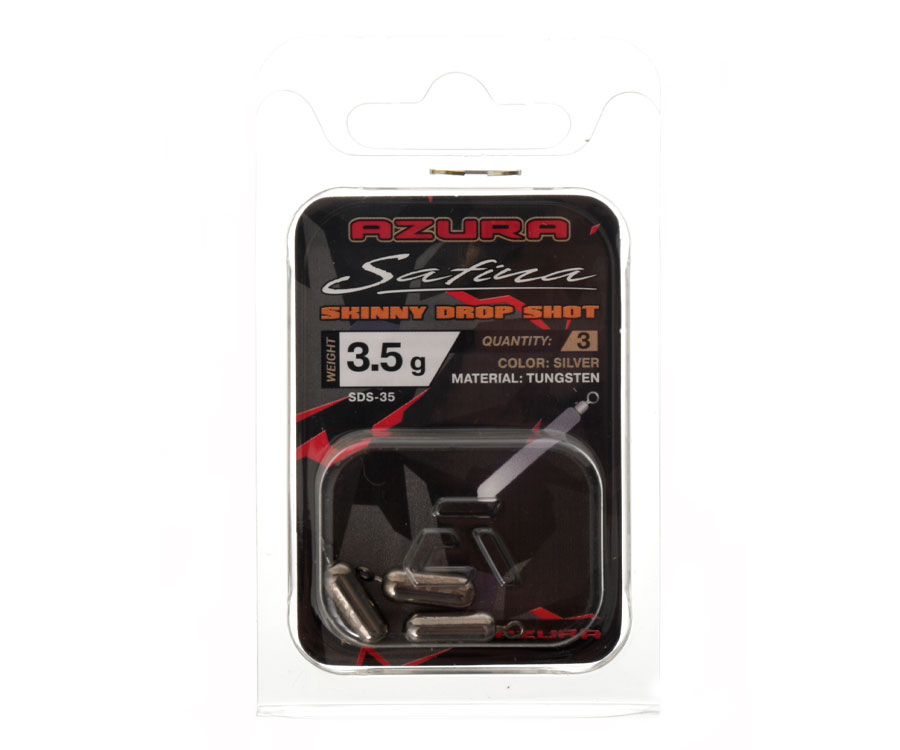 Azura Safina Tungsten Skinny Drop Shot – вольфрамовое грузило для оснастки «джиг-риг». Имеет вытянутую цилиндрическую форму. Качественный встроенный вертлюг препятствует перекручиванию лески, а вытянутая форма грузила Azura Safina Tungsten Skinny Drop Shot способствует незацепляемости и дальнему забросу оснастки. Вольфрам имеет большую плотность, чем сплавы из свинца, поэтому грузила из него получаются меньшего размера. А это позитивно сказывается на дальности и точности заброса. Кроме того, вольфрамовые грузила более «звонкие», что существенно повышает чувствительность снасти. Монтаж «джиг-риг» с грузилом Azura Safina Tungsten Skinny Drop Shot хорошо пробивает водную растительность, малозацепист, прекрасно зарекомендовал себя при ловле окуня, щуки и судака. Грузила изготавливаются в широком диапазоне весов и размеров.