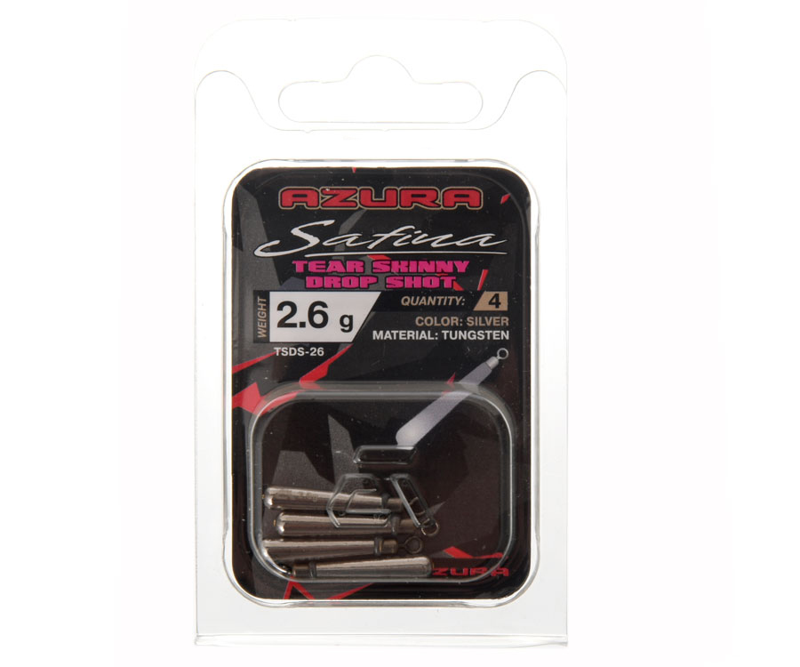 Azura Safina Tungsten Tear Skinny Drop Shot – вольфрамовое грузило для оснастки «джиг-риг». Имеет вид вытянутой капли. Качественный встроенный вертлюг препятствует перекручиванию лески, а вытянутая форма грузила Azura Safina Tungsten Tear Skinny Drop Shot способствует незацепляемости и дальнему забросу оснастки. Вольфрам имеет большую плотность, чем сплавы из свинца, поэтому грузила из него получаются меньшего размера. А это позитивно сказывается на дальности и точности заброса. Кроме того, вольфрамовые грузила более «звонкие», что существенно повышает чувствительность снасти. Монтаж «джиг-риг» с грузилом Azura Safina Tungsten Tear Skinny Drop Shot хорошо пробивает водную растительность, малозацепист, прекрасно зарекомендовал себя при ловле окуня, щуки и судака. Грузила изготавливаются в широком диапазоне весов и размеров.