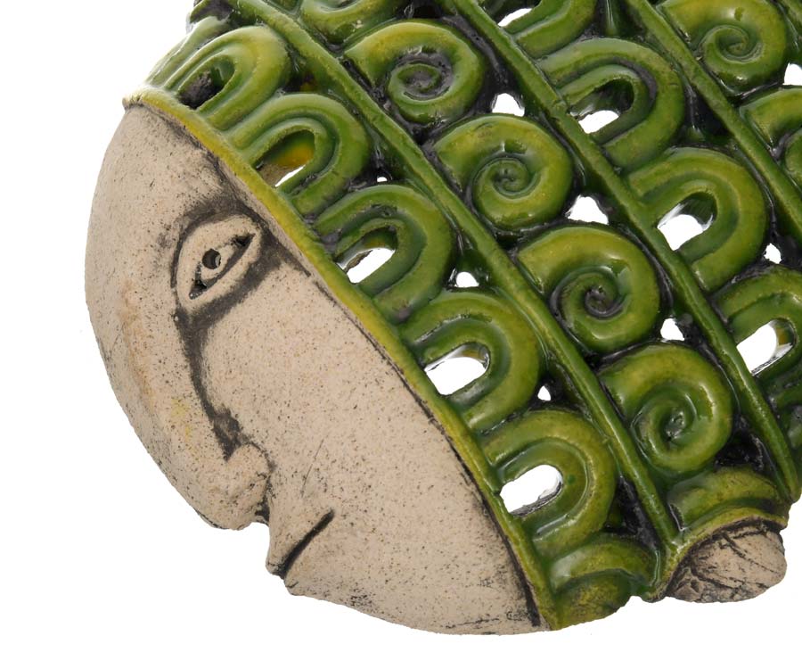 Станет отличным украшением для стен дома и дачи. Прекрасно заменяет картину для кухни. Отличный подарок любителю рыбалки или другу, родившемуся под этим знаком зодиака. Имея сквозные отверстия выполняет роль оригинального светильника. Ручное формование из шамотной глины, покрыта глазурью. Обжиг 1200 С. Наша керамика может жить как в доме, так и на улице. Не боится морозов и снега.