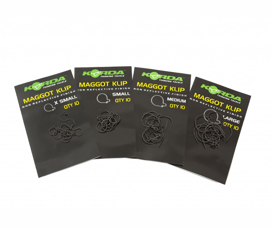 Клипса Korda Maggot Klip выполнена из высококачественной стали, имеет темное, тефлоновое покрытие, которое не только надежно защищает металл от коррозии, но и превосходно маскирует клипсу в воде. Производитель предлагает четыре размера клипс — X Small, Small, Medium, Large. Поэтому каждый любитель рыбалки сможет легко подобрать клипсу по своим предпочтениям.