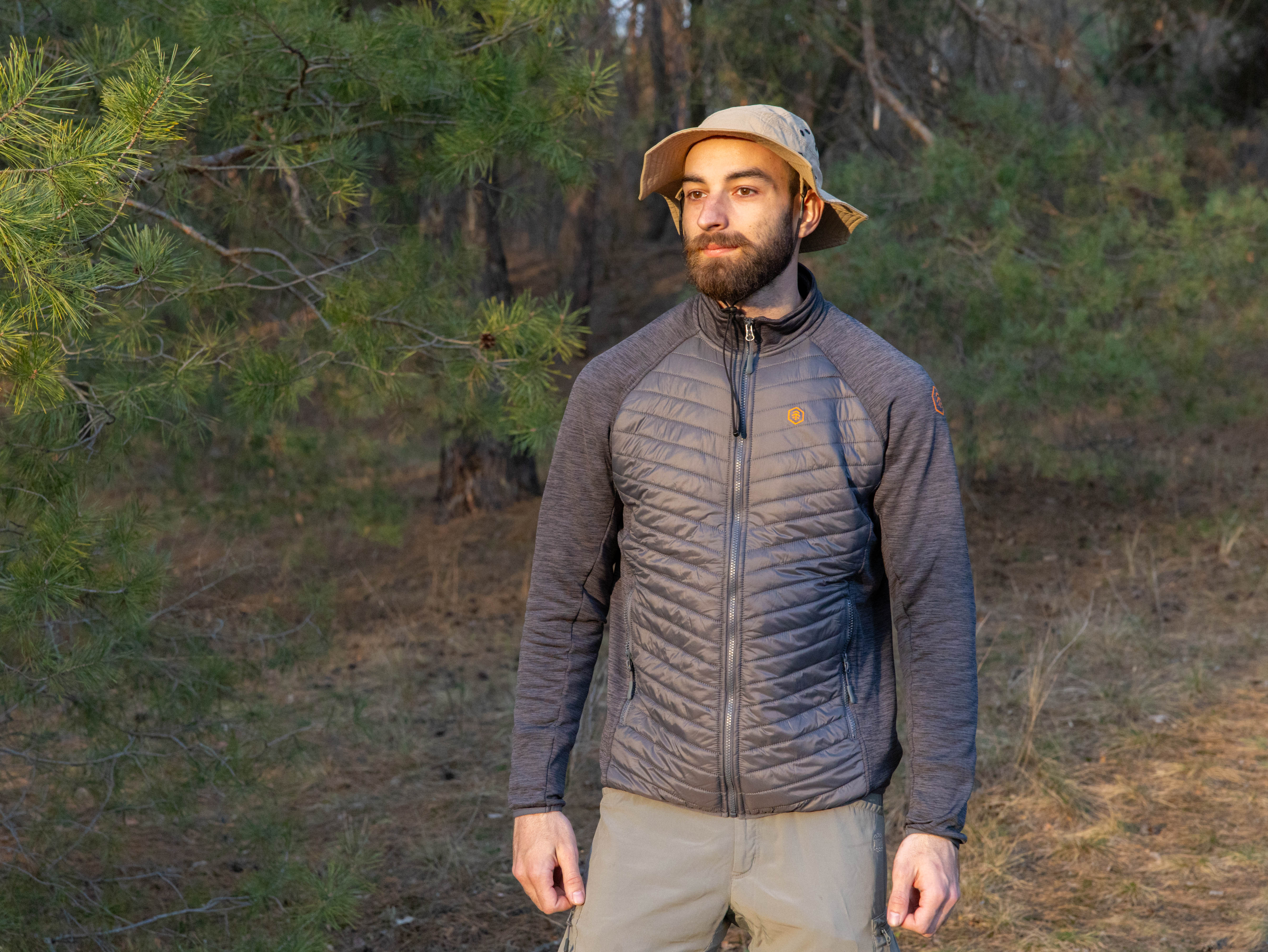 Forrest Hybrid Power Stretch – тёплая кофта для рыбалки, туризма, отдыха на природе и повседневной носки в межсезонье, скомбинированная из нескольких материалов: нейлона и уникальной новой технологичной ткани Power Stretch. Последняя состоит из многочисленных прочных эластичных волокон, которые обеспечивают высокое растяжение ткани во всех направлениях не ограничивая движений. Внутренний слой Power Stretch поглощает влагу с поверхности кожи и непрерывно выводит её на внешний слой ткани для быстрого испарения. Кроме того, внешняя поверхность Power Stretch имеет покрытие с низким коэффициентом трения, поэтому идеально сочетается с другими тканями и прекрасно противостоит истиранию. Комбинирование нейлона с DWR пропиткой, материала Power Stretch и инновационного утеплителя Hollowsoft, созданного по самым современным европейским технологиям, обеспечивает одежде высокие технические характеристики, современный стильный вид и комфорт в носке. Кофта Forrest Hybrid Power Stretch очень лёгкая, хорошо отводит влагу, имеет высокую теплоизоляцию. Она застёгивается на прочную молнию, имеет высокую горловину, внешний карман на молнии и два вместительных внутренних кармана. Forrest Hybrid Power Stretch можно носить как самостоятельный элемент, так и в комплекте с рыболовным костюмом, в качестве среднего утепляющего слоя в холодное время года.