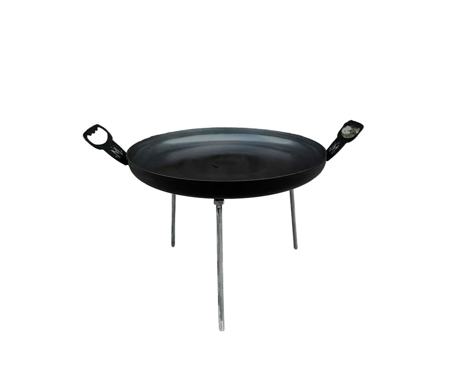 Еще одним преимуществом являются новые съемные дизайнерские ручки и съемные ножки. Это удобно для транспортировки и хранения, а также позволяет использовать сковороду в разных сценариях. Вы можете готовить вкусные блюда на открытом огне, а затем легко убрать ножки для удобства использования на мангале или печи. Ножки представляют собой стальной прут длиной 250 мм и 10 мм.
