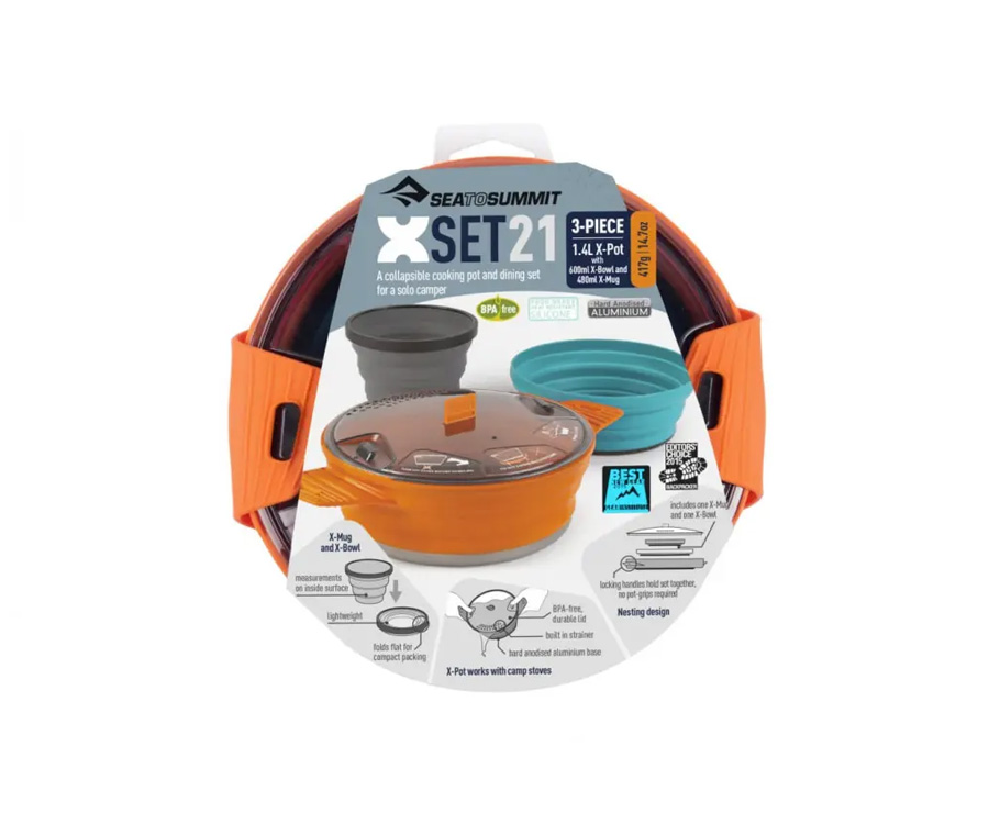 Набор складной посуды Sea to Summit X-Set 21 – компактный набор для приготовления и приёма пищи для любителей соло-походов. Вся посуда серии Х может поместиться внутрь кастрюли X-Pot 1,4L.