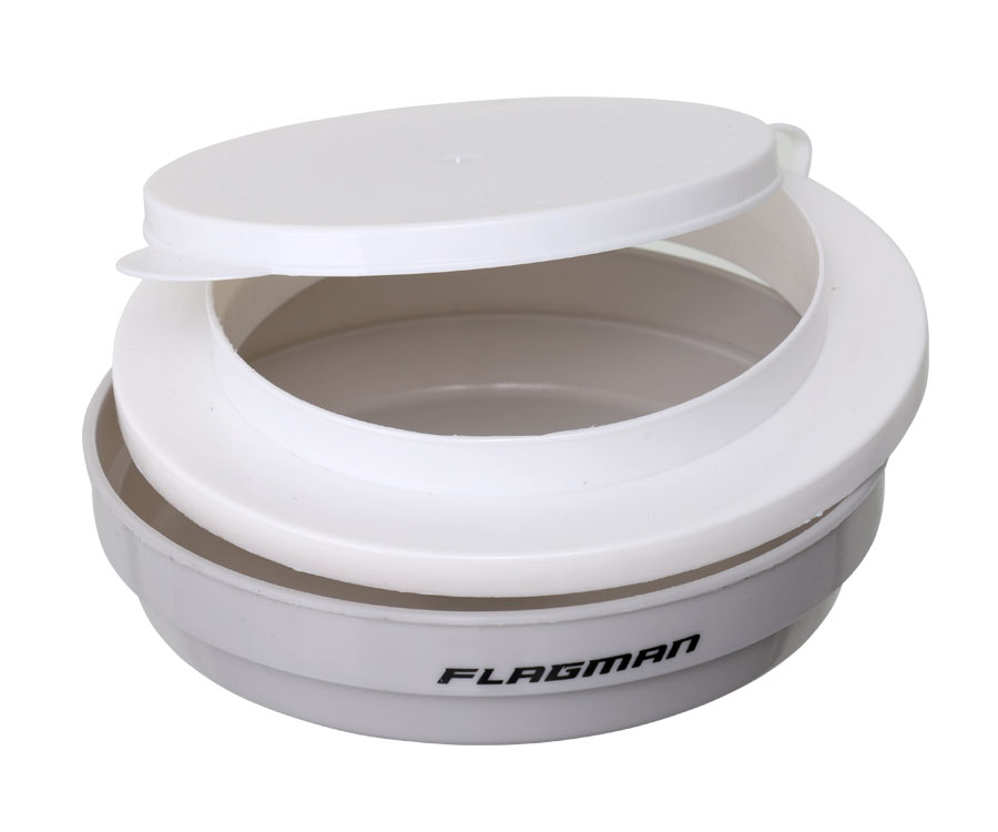 Круглая коробка с плотно закрывающейся крышкой для хранения опарышей и другой наживки. Благодаря крышке с отверстиями наживка «дышит». Специальный пластик, из которого выполнена коробка, легко моется. Коробка конструктивно состоит из двух разделяемых частей, что также облегчает ее мытье. Немаловажно, что крышка с одной стороны прикреплена к коробке — гибкий, пластиковый фиксатор препятствует потере крышки. Flagman предлагает коробки для наживки различной емкости на выбор.
