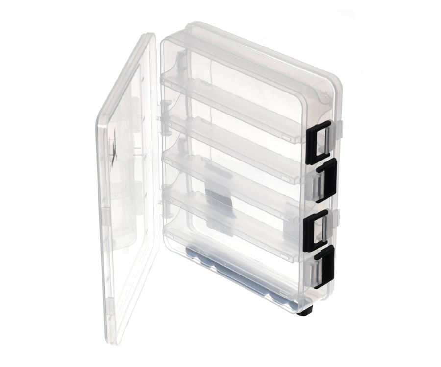 Flagman Tackle Box #22 – двухсторонняя компактная коробка, изготовленная из прозрачного ударопрочного пластика и предназначенная для хранения и транспортировки воблеров. В коробке Flagman Tackle Box #22 внутренние перегородки расположены зигзагообразно, а каждая ячейка имеет V-образный профиль, что позволяет максимально рационально использовать её внутреннее пространство. Крышки Flagman Tackle Box #22 закреплены шарнирно и имеют по две прочных надёжных защёлки. Размеры: 24,5x17x4,8 см.