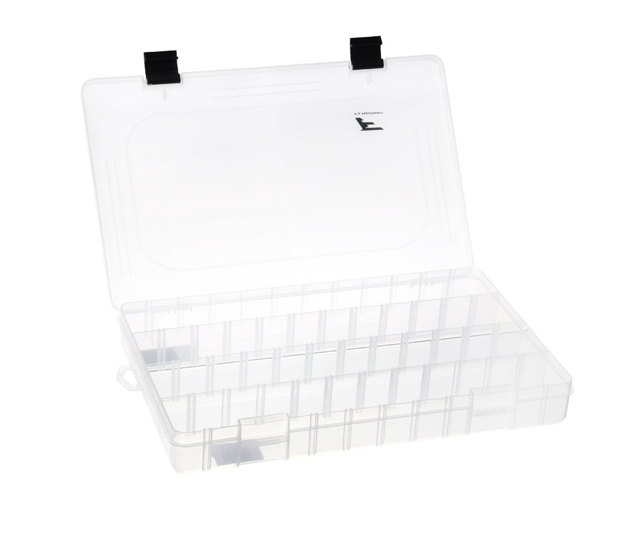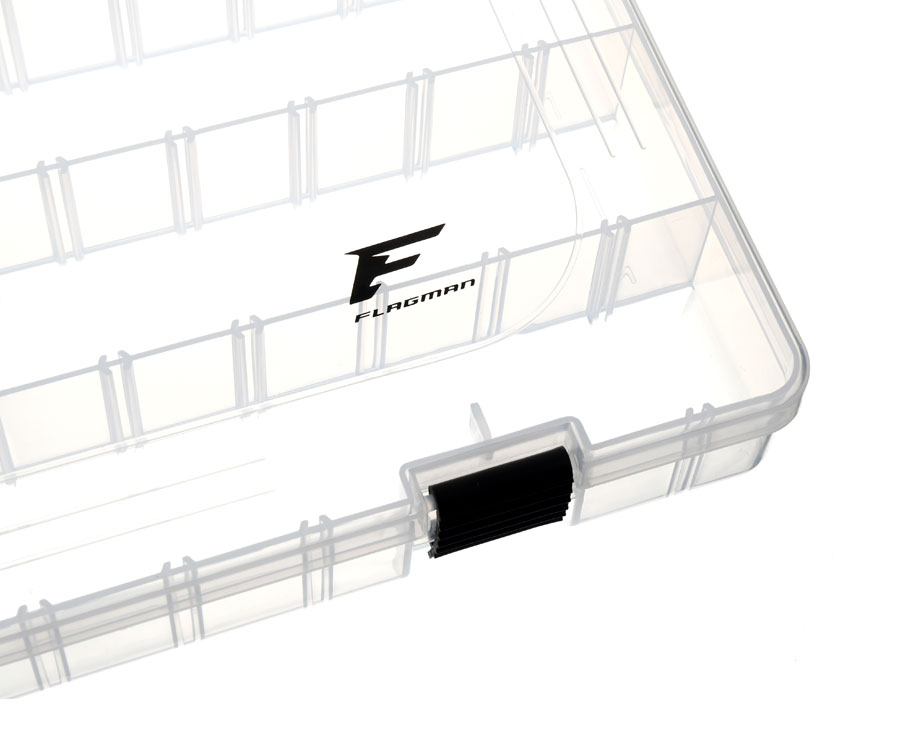 Flagman Tackle Box #7 – вместительная односторонняя коробка, изготовленная из прозрачного ударопрочного пластика. Благодаря системе съёмных перегородок отлично подойдёт для хранения и транспортировки приманок самых разных типов и размеров, а также джиг-головок, элементов оснастки и прочих аксессуаров. Крышка рыболовной коробки Flagman Tackle Box #7 закрывается на две прочных надёжных защёлки. Размеры: 38,5x22,5x8 см.