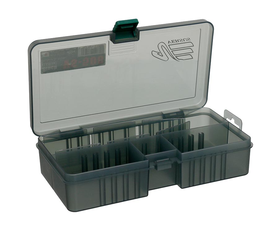 Коробки Versus VS Black из модельного ряда 500/700/800/900/1200 выполнены из высококачественного пластика, который устойчив к ударам, не деформируется и устойчив к ультрафиолету. Конструкция всех коробок минималистична и универсальна: крышки закрываются на одну-единственную защелку, а внутренние отсеки можно видоизменять на свое усмотрение. Пространство регулируется за счет перестановки перегородок, позволяя рыболову менять размеры отделений под его нужды.