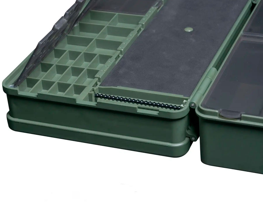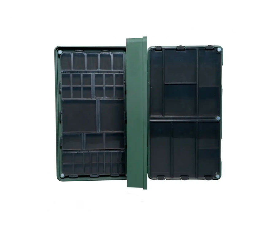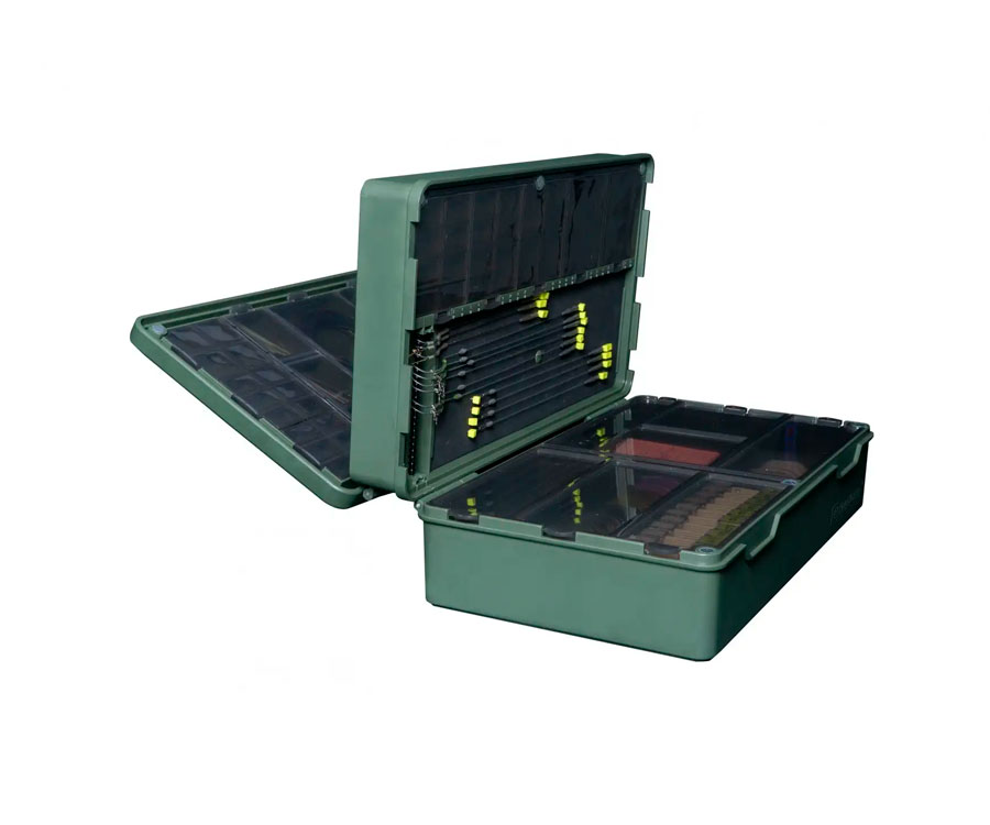 Обновлена версия популярной коробки Armoury Tackle Box, которая теперь предлагает 67 отделений, благодаря использованию внутренней части крышки. Кроме того, кроме внутренней линейки производитель разместил ее также снаружи, чтобы еще удобнее можно было отмерить необходимое количество лески, необходимой для завязывания поводка. Модель Armoury PRO Tackle Box — это очень вместительная коробка, которая позволит разместить все мелкие аксессуары, такие как вертушки, бусинки, кольца, термошарики, а также коробки с крючками или плетеными поводками. Благодаря использованному материалу ABS, коробка не имеет себе равных с точки зрения стойкости к ударам. Внутренняя перегородка, отделяющая основную камеру от крышки, кроме закрываемых отделений, предлагает 3 встроенных паллета для хранения поводков. Дополнительно производитель добавил 45 отдельных и 30 двойных шпилек, которые позволяют их крепление. Коробка использует магнитную систему закрывания отделений, которая продлевает срок службы, а также гораздо удобнее, чем стандартные пластиковые защелки, которые используются во многих конструкциях конкурентов. Armoury PRO Tackle Box – это несомненно позиция для самых требовательных карпятников, которые хотят иметь все аксессуары всегда под рукой.