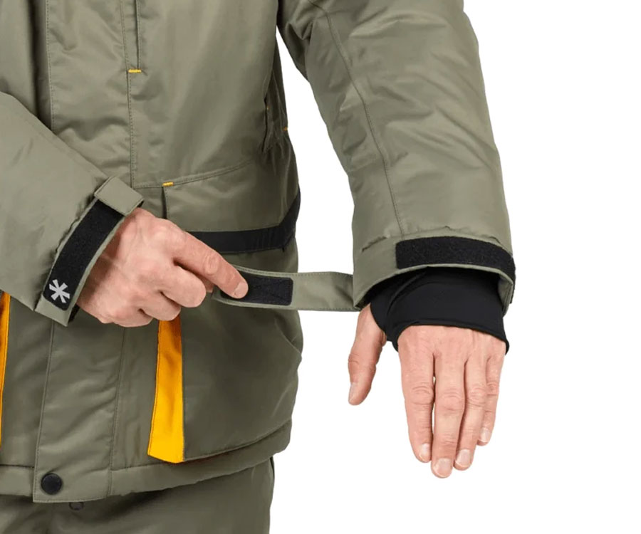 - Манжеты на рукавах: Внутренние эластичные манжеты и наружные регулируемые позволяют плотно зафиксировать рукава и защитить от снега и ветра.