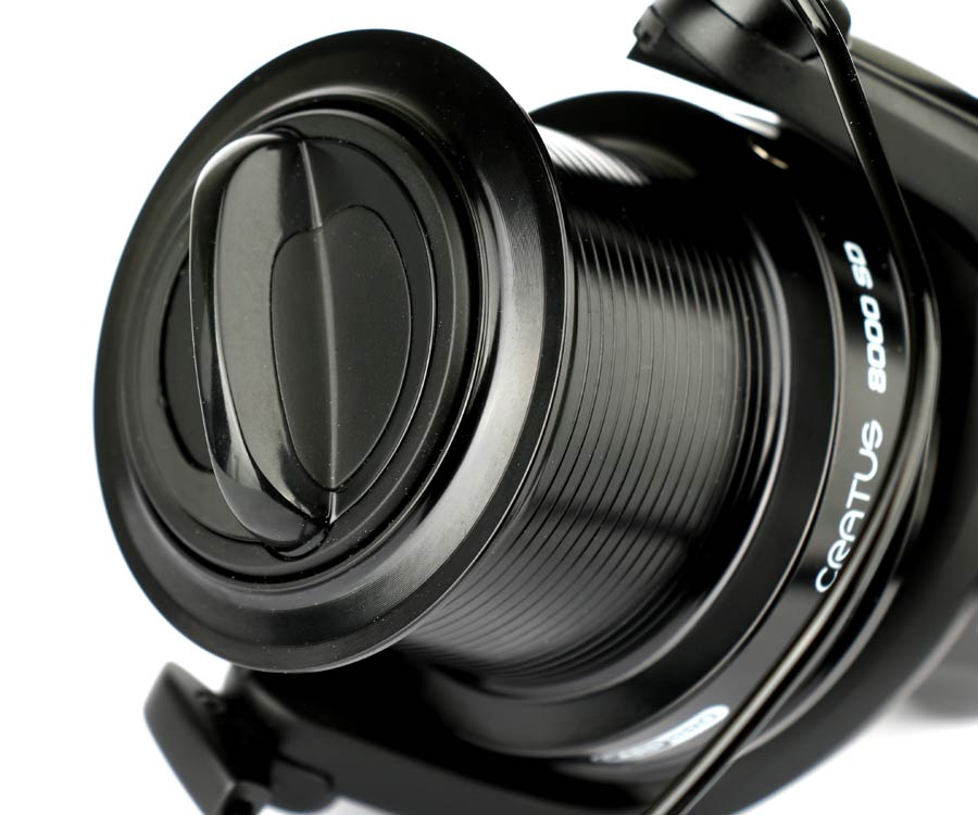 Катушка, разработанная для установки на мощные, дальнобойные карповые, а также сподовые удилища. В конструкцию заложены две основные идеи — высочайшая надежность и обеспечение максимальной дальности заброса. Крупная низкопрофильная алюминиевая шпуля имеет коническую форму, а также конический передний буртик, что существенно снижает трение лески при забросе. Также повышению дальности способствует исключительно качественная укладка лески, которую обеспечивает бесконечный винт. Укороченная для снижения веса юбка шпули имеет специальный выступающий буртик, который входит в контакт с двумя тонкими резиновыми лентами на роторе. Это не дает леске попадать под шпулю и наматываться на ось. Тяговый механизм и очень прочный пластиковый корпус способствуют повышению ресурса катушки. Ролик лесоукладывателя имеет сверхтвердое напыление, и благодаря своей форме препятствует перекручиванию лески. «Быстрый» передний фрикцион полностью затягивается за ¾ оборота, что делает катушку почти такой же удобной в использовании, как и катушки с Free Spool System. И это при более компактных габаритах и высокой надежности.
